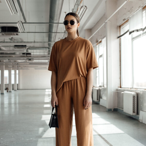 Marškinėlių ir kelnių kostiumėlis „COLUMN CARAMEL“