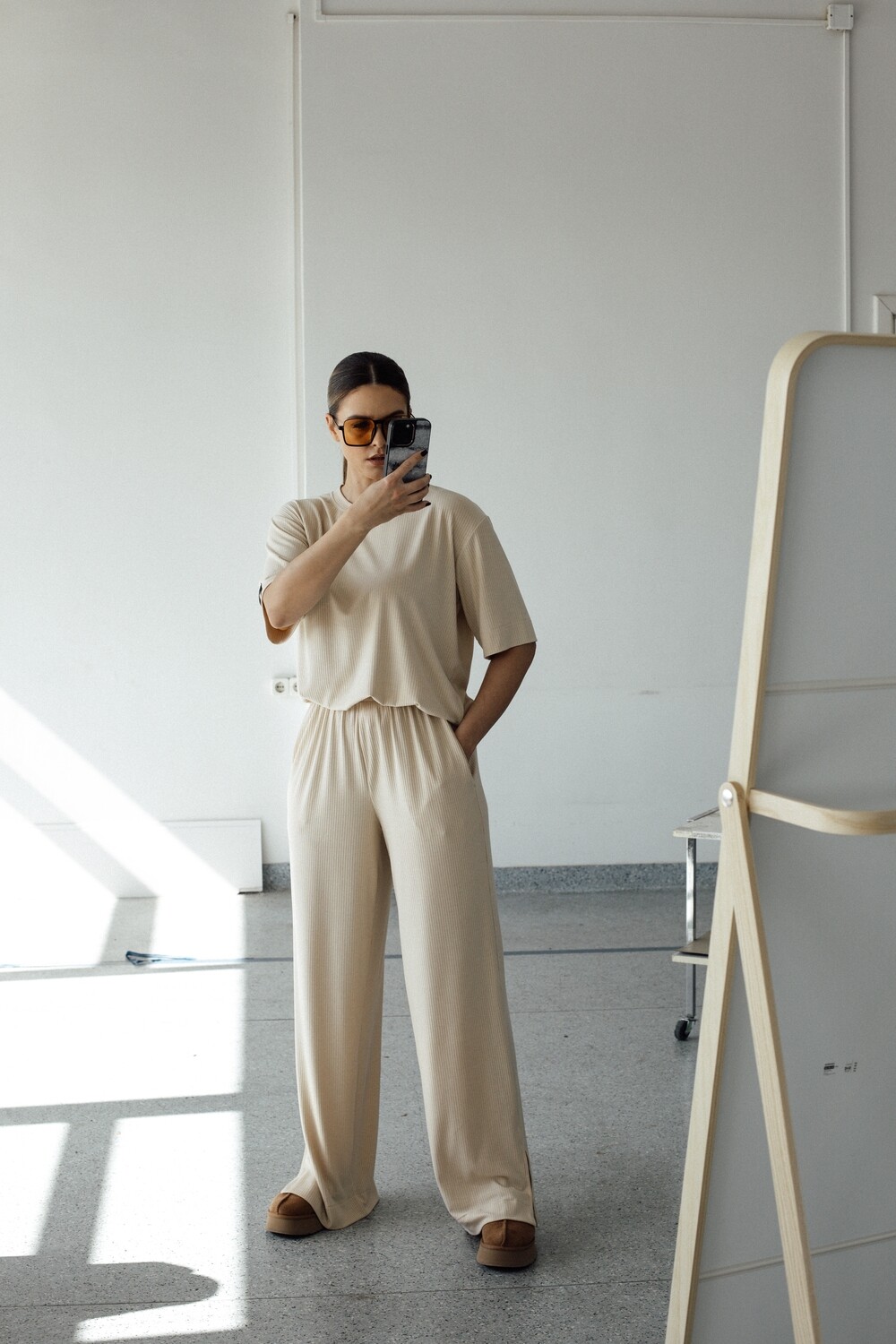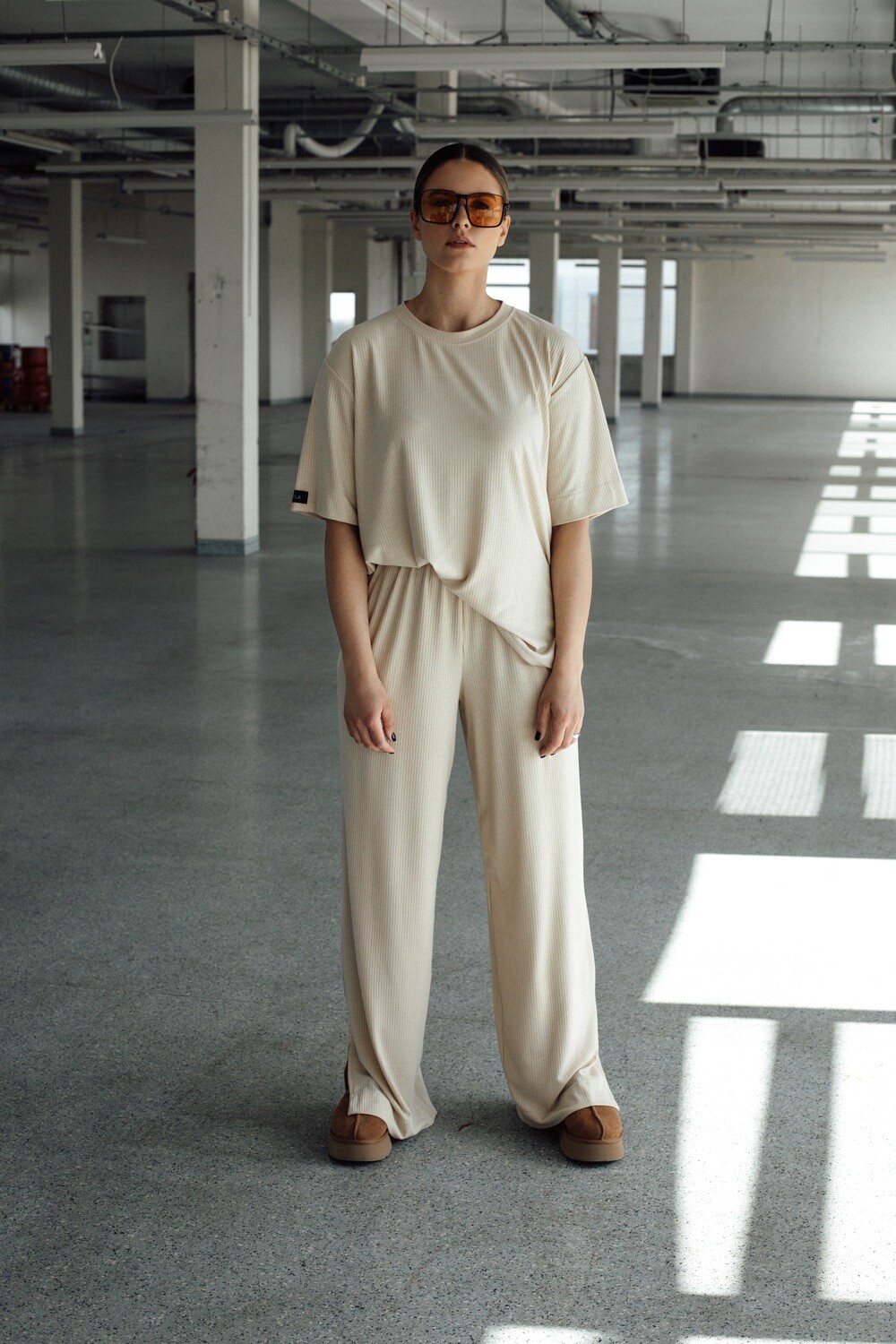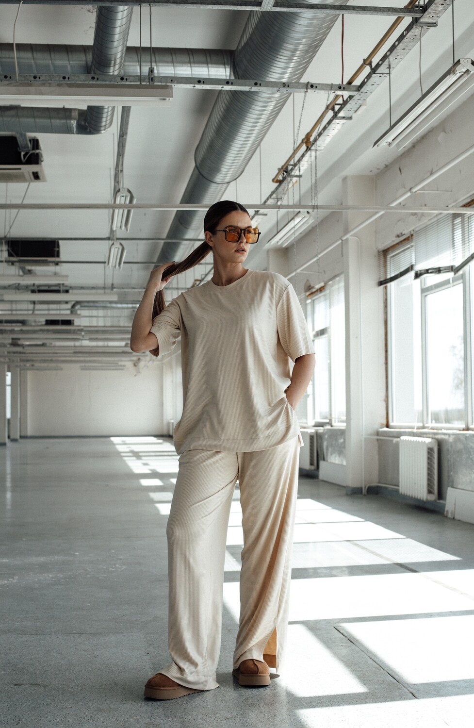 COLUMN kostiumėlis – kalba apie vidinę stiprybę. Tai stilinga, stulpelių rašto, labiau klasikinio kostiumėlio interpretacija, pagaminta iš trikotažo.