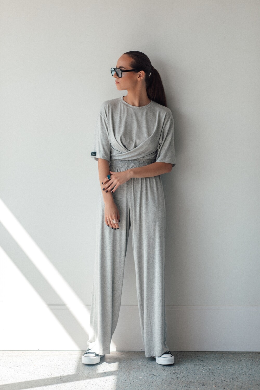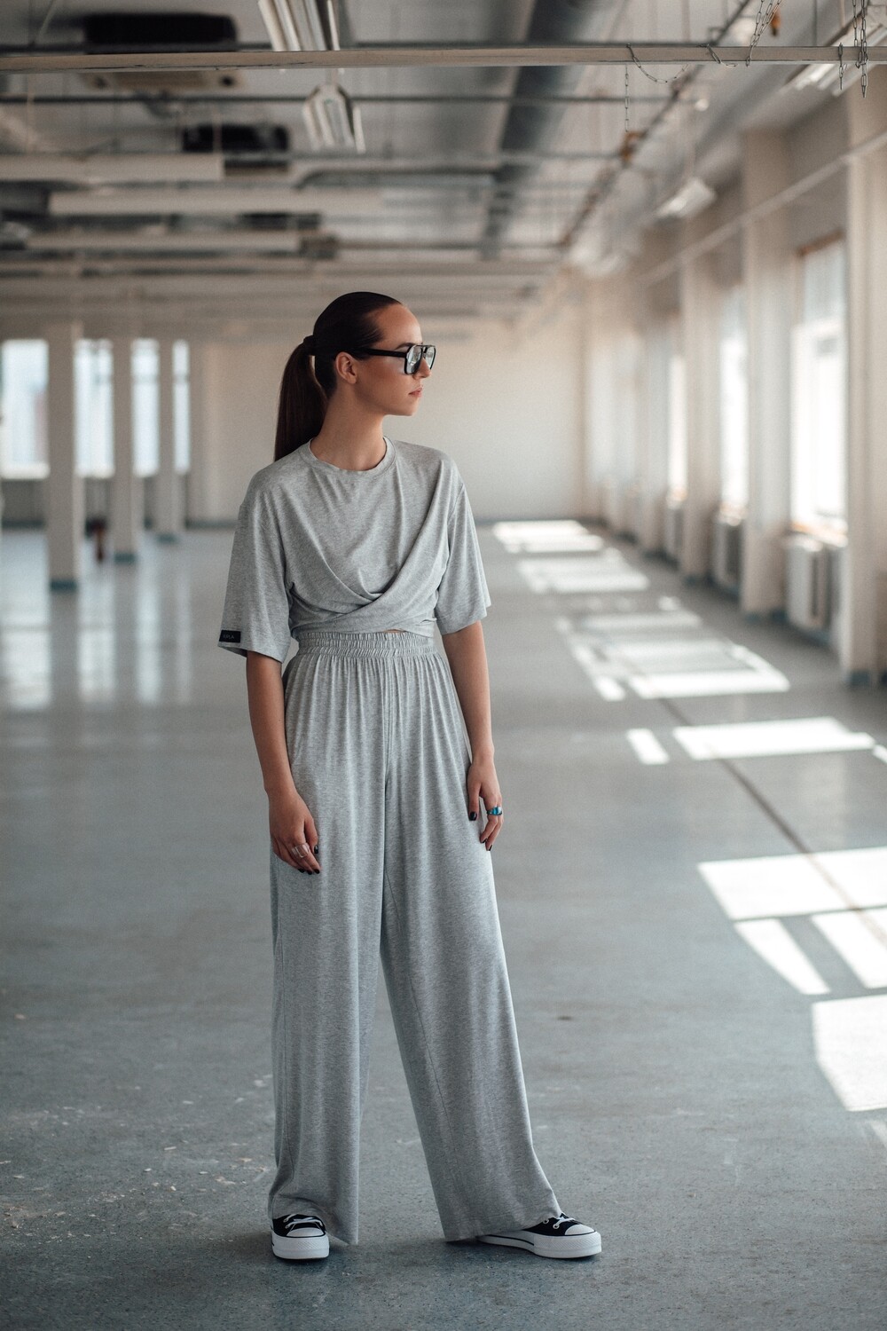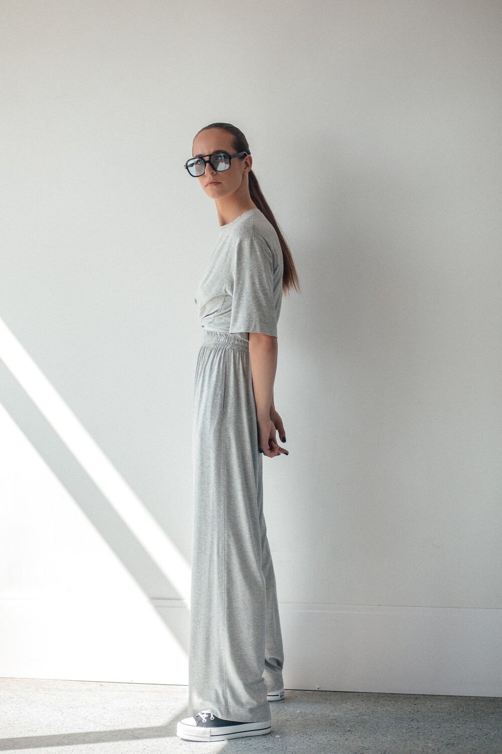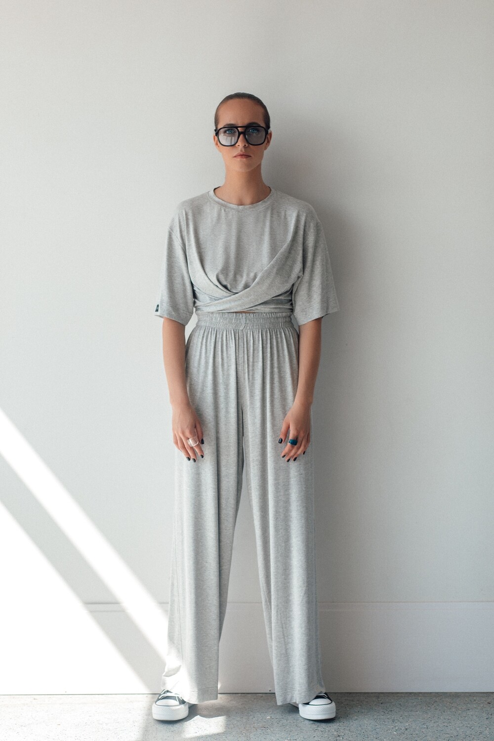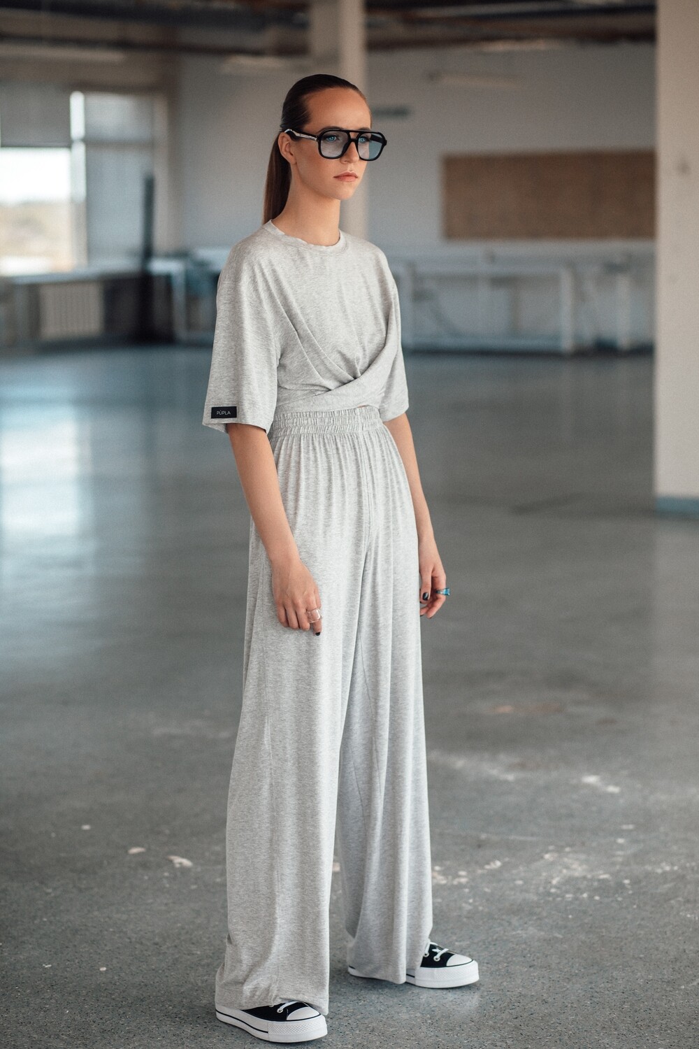 Kelnės plačios ir itin gražaus kritimo, kurį joms suteikia šis nuostabus trikotažas. Kaip visuomet – aukštas liemuo, kišenės ir maxi ilgis.