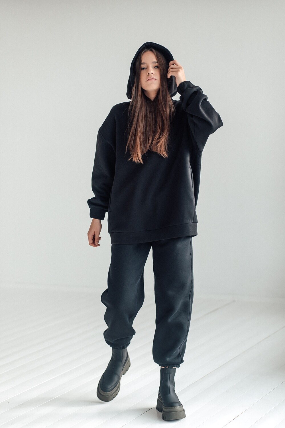 Medžiaga – trikotažas su pūkeliu: 65% medvilnė ir 35% poliesteris.