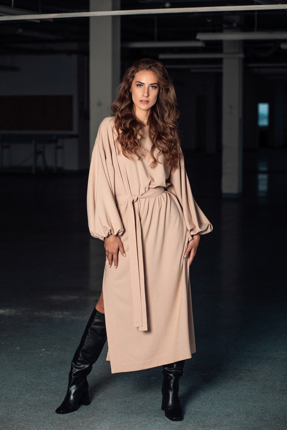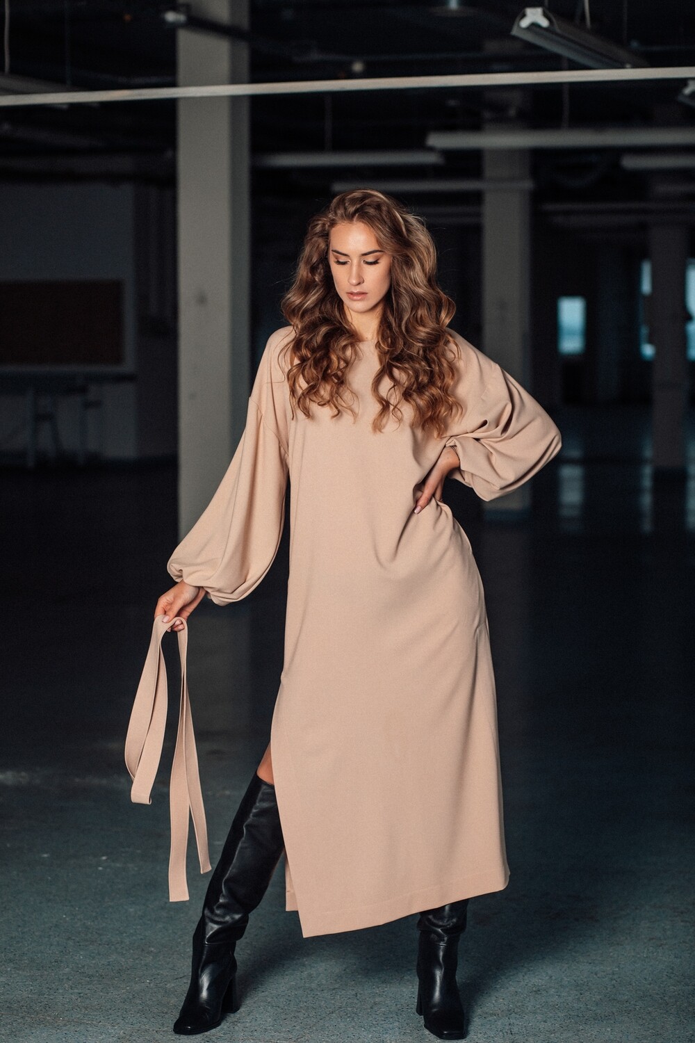 Skeltukai suknelės šonuose paslaptingai ir subtiliai atvers jūsų kojas. Ir kaip visuomet PÙPLA skiriamasis bruožas – išraiškingos rankovės.